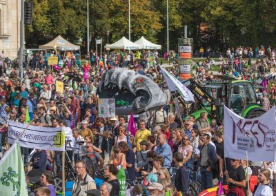 18.000 Menschen waren mit uns auf der Straße. Laut und bunt, in kreativen Kostümen, mit selbst gebastelten Schildern und natürlich unseren großen Aktionsbildern.