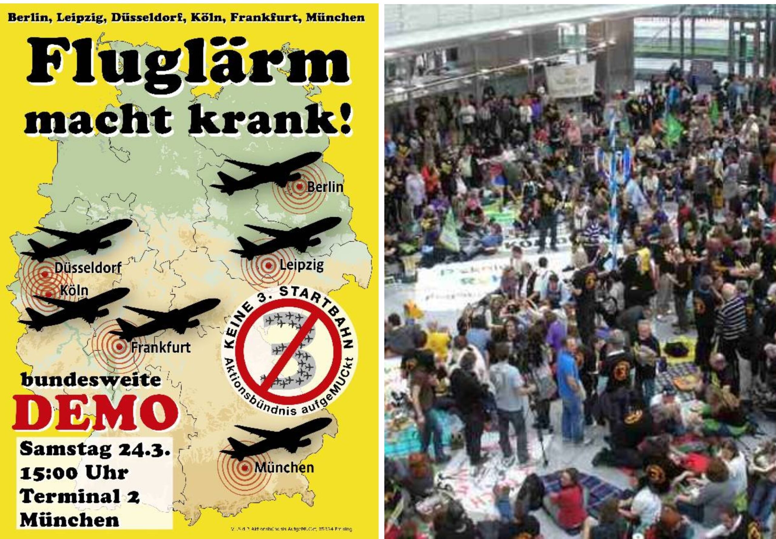 Bundesweit fordern Bürgerinitiativen ein einheitliches Nachtflugverbot an Flughäfen von 22:00 – 06:00 Uhr. Dazu finden am 24.11.2012 in Berlin, Frankfurt, Köln, Leipzig und München Demonstrationen statt.